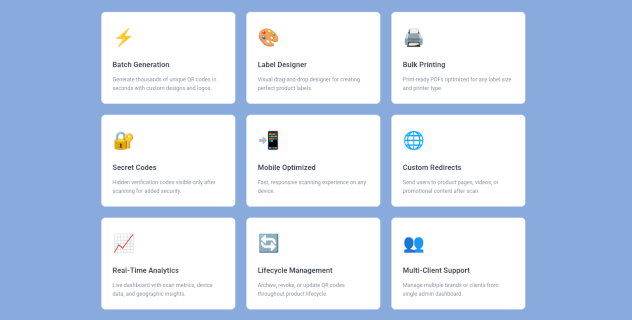 Advanced QR analytics platform that captures real-time consumer behavior, tracks product authenticity, and delivers actionable insights across your supply chain.